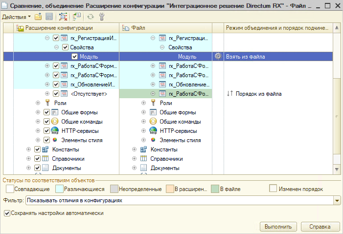 Откроется окно сравнения разработки доработанного расширения и новой версии расширения из комплекта поставки:
