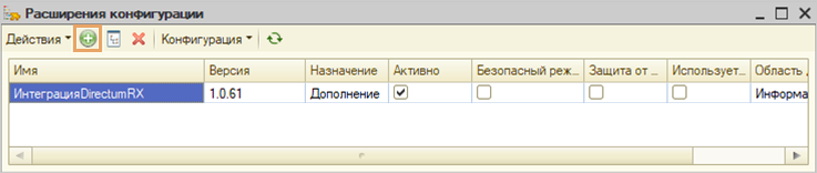 8.В открывшемся списке выберите созданное расширение и нажмите на кнопку Выбрать: