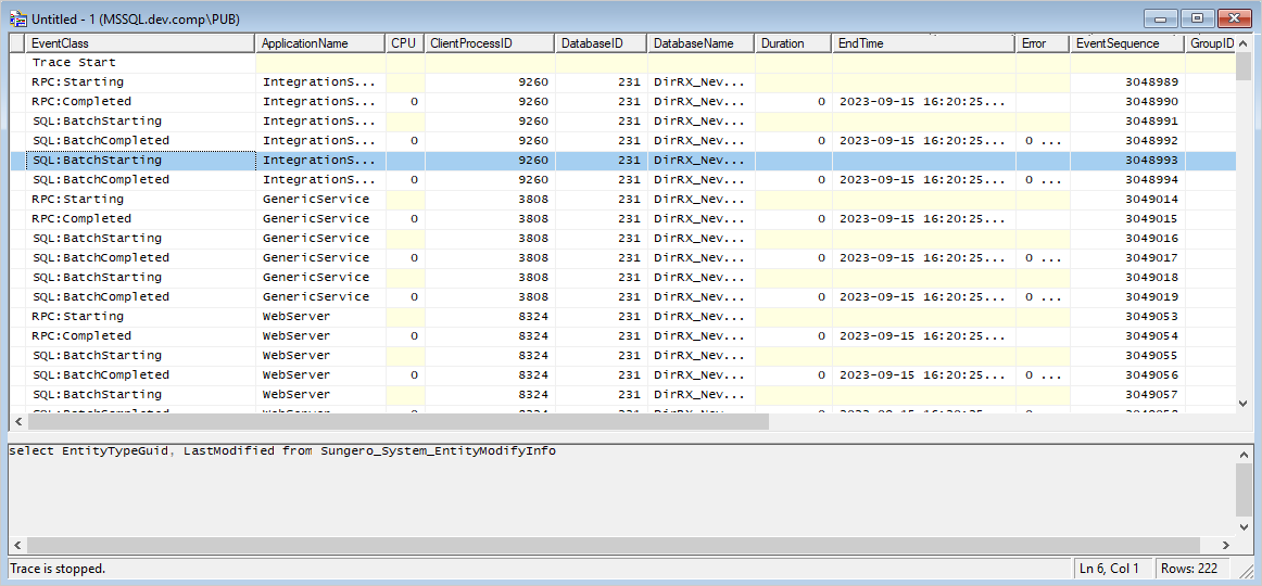 •SQL:SmptStarting – запущена инструкция Transact-SQL;