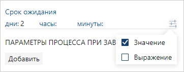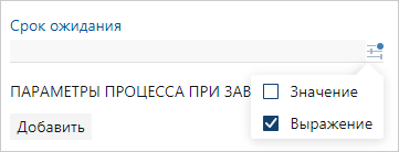 Если установлен флажок Выражение, то срок ожидания задайте с помощью вычисляемого выражения. Для этого: