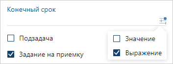 Если установлен флажок Выражение, то задайте срок с помощью вычисляемого выражения. Для этого: