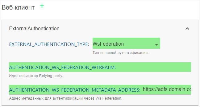 WebAgent. Автоматически добавятся параметры: WEB_AGENT_URL_SCHEME, WEB_AGENT_REFRESH_TOKEN_LIFETIME, WEB_AGENT_PORT и др.