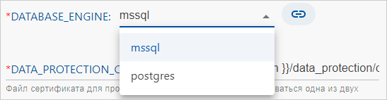 •если параметр заполняется только определенными значениями, в выпадающем списке выберите нужный вариант: