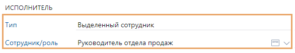 •Сотрудник/роль. При выборе становится доступно поле *Сотрудник/роль. Укажите в нем имя конкретного сотрудника или роль с одним участником;