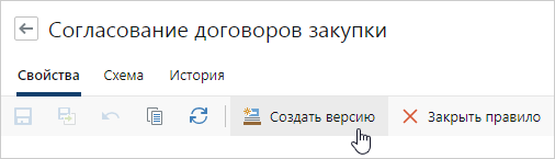 1.В карточке правила согласования на панели действий нажмите на кнопку Создать версию.