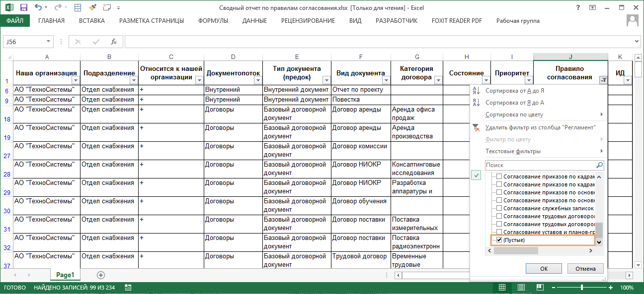 3.Отфильтруйте колонку «Правило согласования» по значению Пустые. В результате отобразятся все сочетания критериев, для которых нет настроенных правил.