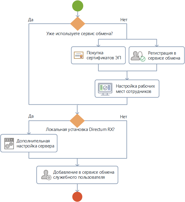Примечание. Перечисленные в разделе действия необходимо выполнить для каждой нашей организации, которая будет обмениваться документами с контрагентами через сервисы обмена.