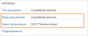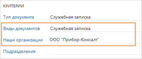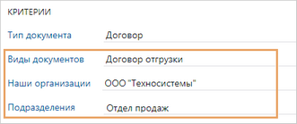 Чтобы при создании документа сотрудникам было удобнее выбирать нужный шаблон, заполните критерии в его карточке. Например, вид документа и подразделение. В результате при создании документа сотруднику станут доступны только шаблоны, соответствующие указанным критериям.