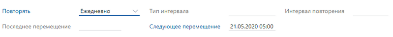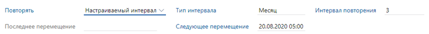 Интервал повторения. Количество дней или месяцев, по истечении которых нужно выполнить перемещение документов.