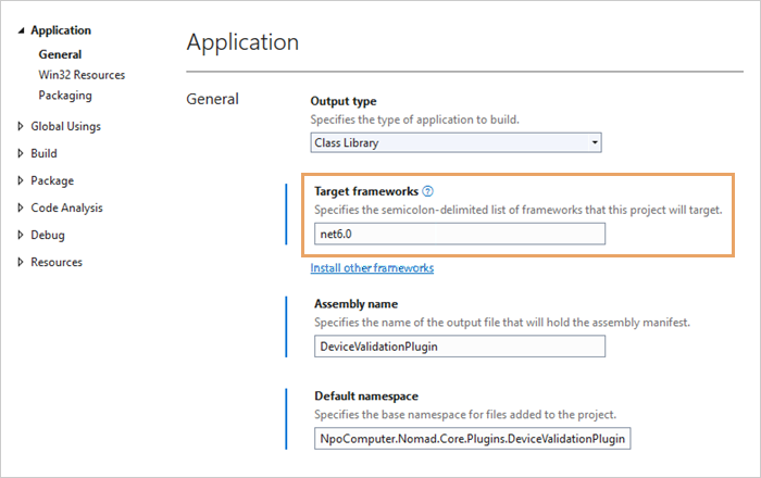 10.В контекстном меню проекта выберите пункт Properties. 11.Перейдите в раздел «Application» и в поле Target frameworks установите значение .NET Framework 4.6. Эта версия соответствует версии подключаемых сборок сервиса NOMAD: 12.Реализуйте методы выбранного интерфейса. |
