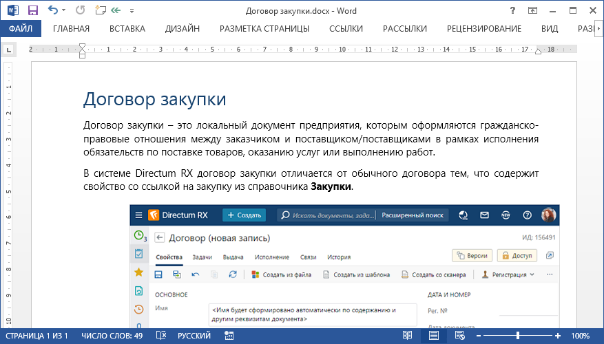 1.В документе Microsoft Word опишите новый тип документа «Договор закупки»: