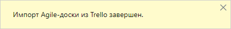 4.Нажмите на кнопку ОК. В результате карточка доски автоматически закрывается, и на доску добавляются тикеты вместе с названиями, описаниями, сроками выполнения, метками и ссылками на исходные тикеты в Trello. Когда импорт завершен, появляется сообщение: