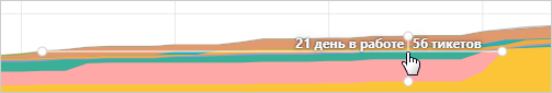 Горизонтальная ось диаграммы – это временная шкала, а вертикальная – количество тикетов в колонках в соответствующий день.
