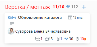 – лимит дней без движения. Если тикет не перемещается в другие колонки дольше этого срока, то количество дней без движения на нем отображается красным.