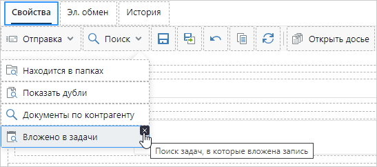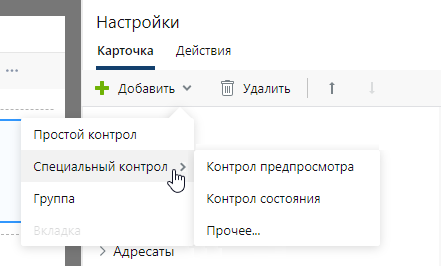 ПРИМЕЧАНИЕ. Добавление доступно только на форме. На панели действий можно настраивать только имеющиеся элементы, добавлять новые нельзя. Если в среде разработки элемент скрыт программно, то в веб-клиенте он не отобразится, даже если добавить его с помощью редактора форм в проводнике.