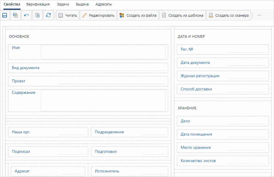 ПРИМЕЧАНИЕ. При создании представления формы задачи, задания, уведомления и документа настроены основные действия. При необходимости измените их состав или задайте для других типов сущностей.