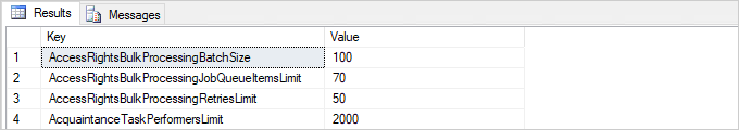 В системе можно автоматически выдавать права сотрудникам на все ранее созданные документы определенного вида, подразделений или организации. Это упрощает настройку прав доступа для большого количества документов. Для этого создается запись в справочнике Правила назначения прав. При сохранении записи запускается массовое назначение прав, в ходе которого документы делятся на пакеты. Чтобы ускорить этот процесс, администратор может изменить параметры: •AccessRightsBulkProcessingBatchSize – количество документов в одном пакете, на которые массово выдаются права доступа согласно созданным правилам. Значение зависит от объема оперативной памяти сервера, где развернут сервис асинхронных событий. Значение по умолчанию 100; •AccessRightsBulkProcessingJobQueueItemsLimit – количество пакетов, для которых выдача прав должна запускаться одновременно. Значение по умолчанию 70; •AccessRightsBulkProcessingRetriesLimit – максимальное количество повторов запуска обработки, после которого прекращается выдача прав на документы. Значение по умолчанию 50. Для расчета оптимальных значений используются формулы. Подробнее см. раздел «Правила назначения прав». |