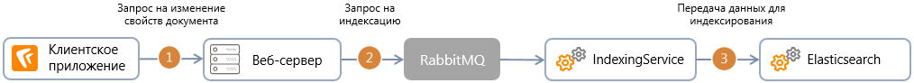 2.Веб-сервер через очередь сообщений RabbitMQ отправляет запрос на индексирование измененного свойства.
