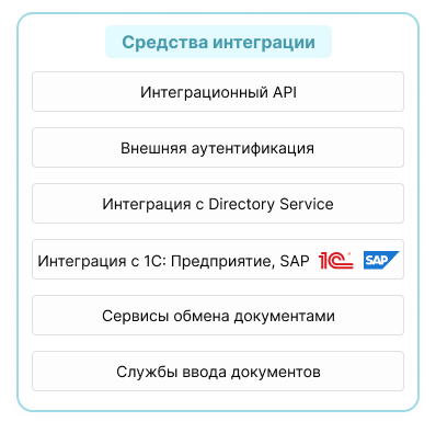 Интеграционный API. Среди серверных компонентов Directum RX есть сервис интеграции, который позволяет настраивать интеграции с другими системами: ERP, MDM, CRM и т.п. Для разработки интеграции с внешними системами используется интеграционный API.