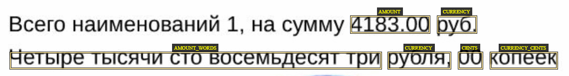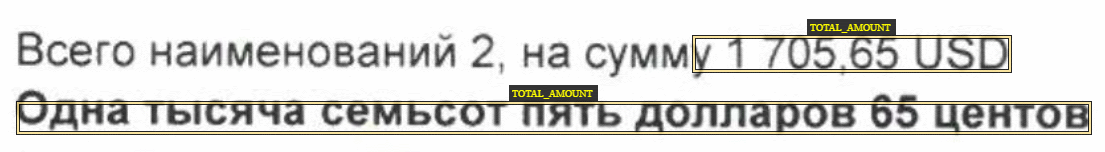 4.Размечайте остальных контрагентов в документе как «Реквизиты прочих организаций». Сумма и валюта 1.Целая часть суммы – это основная сумма. Например: 250 000 руб. или 250 000.00 руб. Дробная часть суммы – это копейки или центы. Например, 60 коп. или 20 центов. 2.Размечайте все значения валюты. В том числе валюту, которая относится к итоговой сумме (в том числе НДС), и валюту, расположенную в заголовке и итогах таблицы, а также в тексте после суммы. Валюта может быть указана как: RUB, Руб, Рубль, Р. Размечайте все виды наименований. 3.Если сумма документа указана в иностранной валюте (евро, доллары) и в тексте написано «Оплата производится в рублях по курсу евро ЦБ РФ на день оплаты», не размечайте валюту в этом тексте. 4.Размечайте итоговую сумму и сумму НДС, которые располагаются под табличной частью и/или внутри нее, на текстовом слое. 5.Размечайте сумму на первом слое как составной факт: