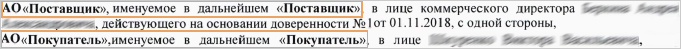 •находятся в тексте документа. 3.Размечайте исполнителя/поставщика и заказчика/покупателя как «Исполнителя» и «Заказчика», если: •в верхней или нижней части документа им соответствуют ключевые слова Исполнитель и Заказчик; •их можно определить однозначно по преамбуле документа: