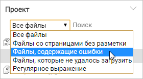 Основная информация: Файл проекта – название проекта с указанием расширения *json. Путь до папки, в которой хранится проект и загруженные в него документы и их разметка. Дата и время последних изменений, внесенных в проект. Статистика: Количество документов, которое содержится в проекте. Количество ошибок, которое допущено при разметке документов. СОВЕТ. Чтобы найти и исправить ошибку: 1.Откройте проект. 2.На панели проекта в выпадающем списке выберите пункт Файлы, содержащие ошибки: