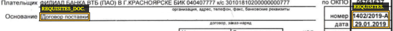 Если в таблице не указаны номер и дата, а в поле Основание только наименование документа, например Договор, Счет, Основной договор, не размечайте его. 3.Если реквизиты документа-основания разделены текстом, то размечайте каждую часть как составной факт «Реквизиты документа-основания» и атрибутом «Новый»:
