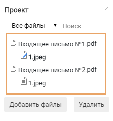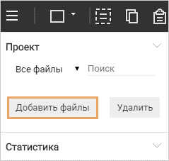 •на панели проекта нажмите на кнопку Добавить файлы: