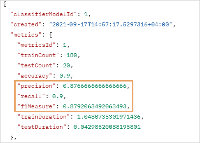 В примере мера успешности обучения (f1Measure) больше 0,85, но меньше 0,93 – значит, модель обучена хорошо.