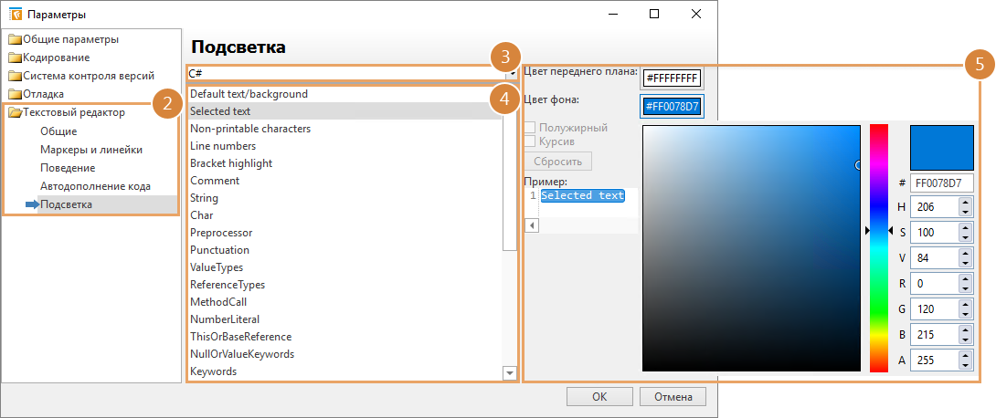 •Цвет фона, которым будет выделяться фрагмент кода.