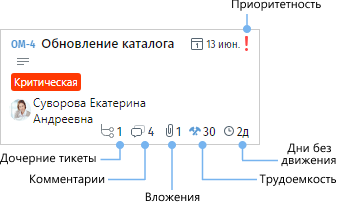 На доске отображается краткая информация по тикетам: