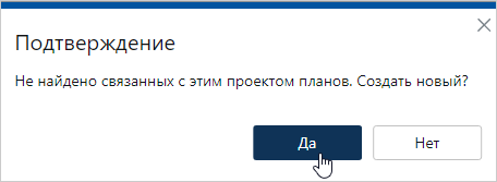 •если план создается по проекту, выберите нужный в списке «Реестр проектов», затем на панели действий нажмите на кнопку План проекта. Если у проекта еще нет связанных планов, появится окно подтверждения. Нажмите на кнопку Да: