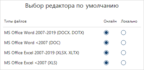 Сотрудники могут самостоятельно решать, с какими документами работать в онлайн-редакторах, а с какими в локальных. Настройки задаются: