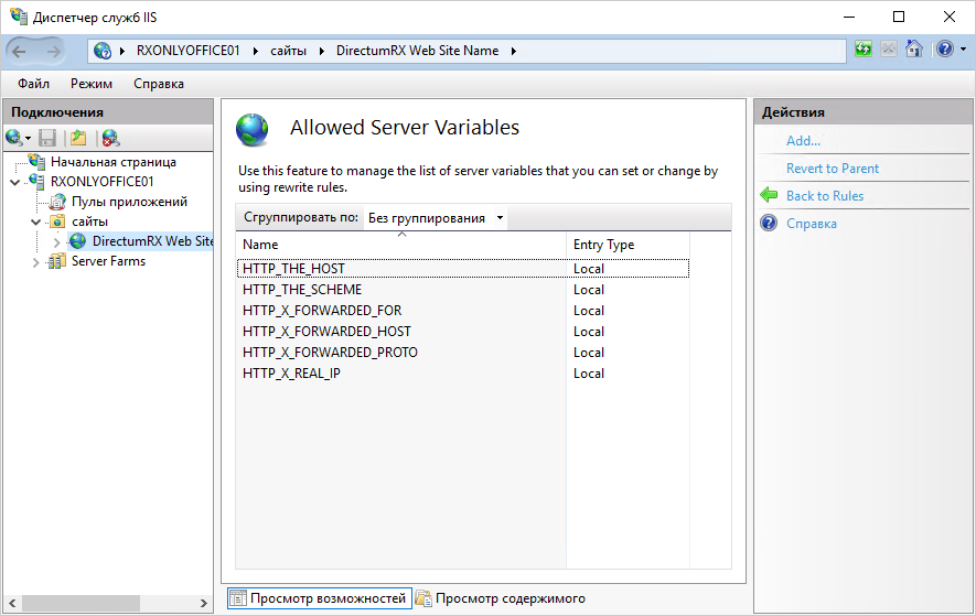 Если модули отсутствуют, установите их. Для установки ARR и URL Rewrite используйте файлы requestRouter_amd64.msi и Rewrite.msi, которые входят в дистрибутив Directum RX. Подробнее см. в разделе «Создание фермы» .