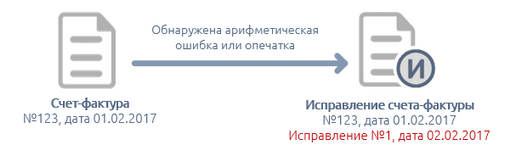 При обнаружении арифметической ошибки или опечатки в счете-фактуре необходимо внести изменения в первоначальный документ. Для этого продавец оформляет исправление счета-фактуры. Документу присваивается номер и дата первоначального счета-фактуры, дополнительно указывается порядковый номер исправления и его дата.
