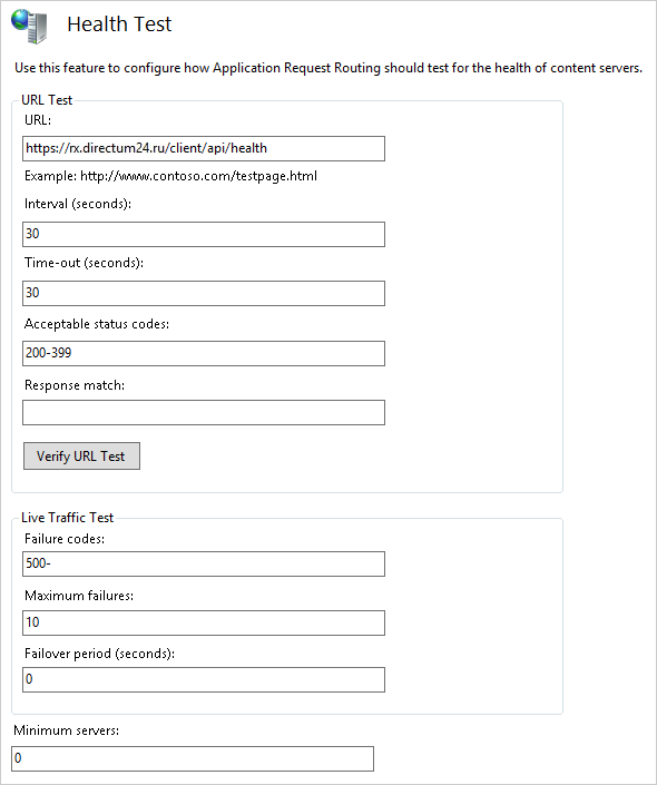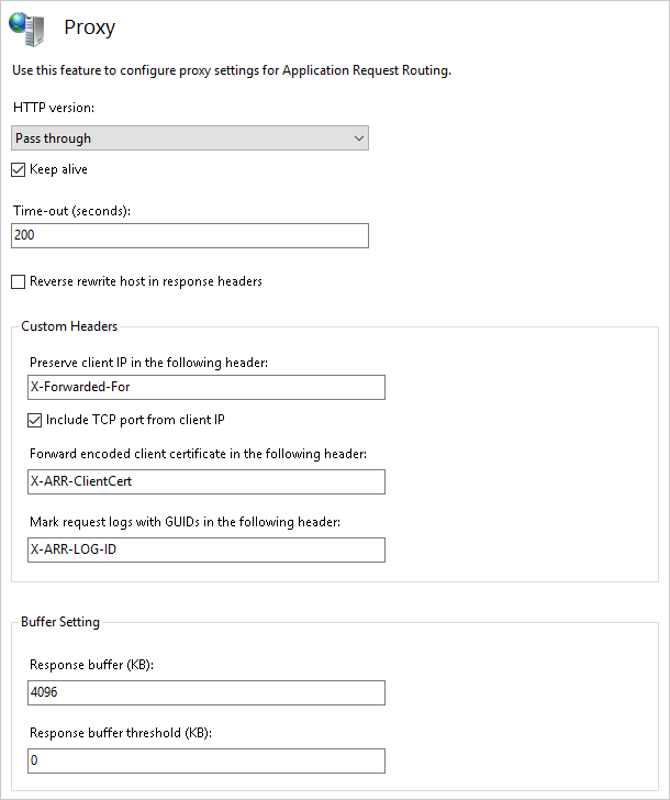 Настройки определяют, как сервер ARR обрабатывает поступающие запросы и перенаправляет их на сервера фермы.