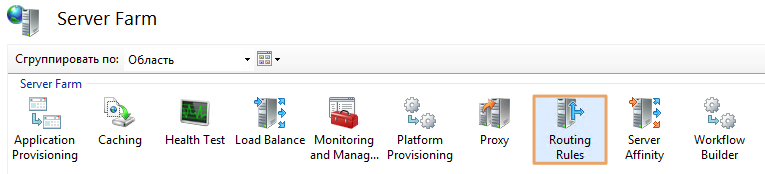 1.В оснастке Диспетчер служб IIS выберите ферму и нажмите на кнопку Routing Rules: