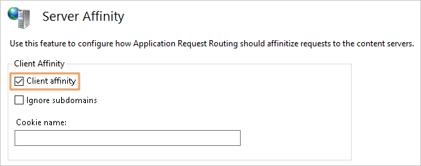 12.На открывшейся странице «Server Affinity» установите флажок Client Affinity: