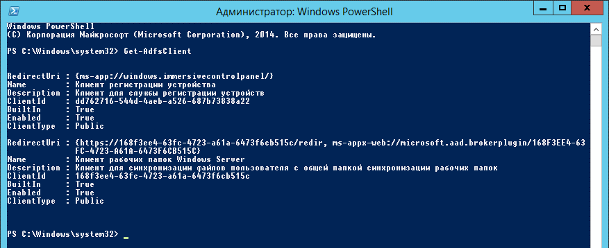 << Click to Display Table of Contents >> Администрирование (Windows) > Общесистемные настройки > Настройка аутентификации > OAuth 2.0 > Настройка OAuth на сервере ADFS 2012 Настройка веб-клиента с помощью утилиты PowerShell |