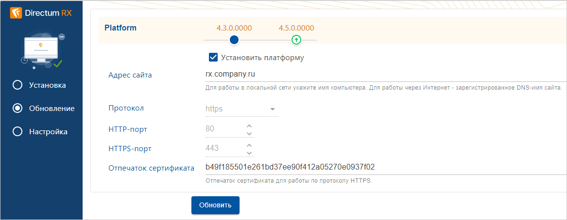 4.Если вы используете службу ввода документов, то переустановите ее после обновления на новую версию Directum RX. Подробнее см. в инструкции по установке, входит в комплект поставки службы.