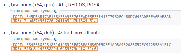 •в package_md5 укажите контрольную сумму MD5, которая указана на сайте КриптоПро под ссылкой для скачивания архива: