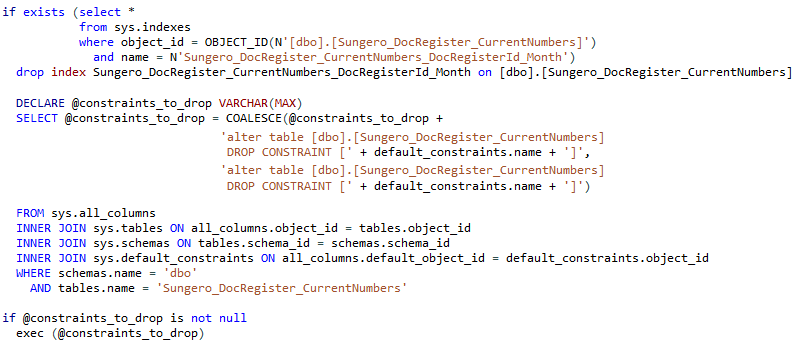 1.Удалить из таблицы старые индексы и ограничения (constraints). Для этого сначала скрипт находит индексы полей, содержащих ИД сущностей, удаляет их, а затем определяет соответствующие индексам ограничения и тоже удаляет их.