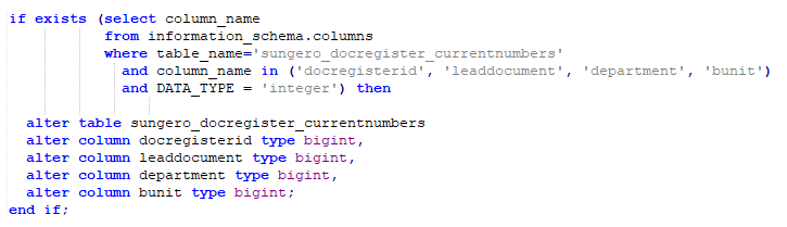 При обновлении Directum RX в базе данных для системных таблиц и таблиц сущностей, в том числе заказных и модифицированных, колонки Id и колонки, содержащие свойства-ссылки, автоматически преобразуются к типу bigint.