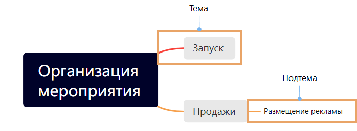 ПРИМЕЧАНИЕ. В интеллект-карте можно создать только одну основную тему, поэтому для создания темы можно использовать клавиши ENTER и TAB.