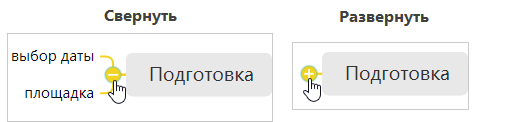 В режиме редактирования и просмотра можно свернуть или развернуть подтемы. Для этого воспользуйтесь одним из способов: