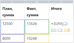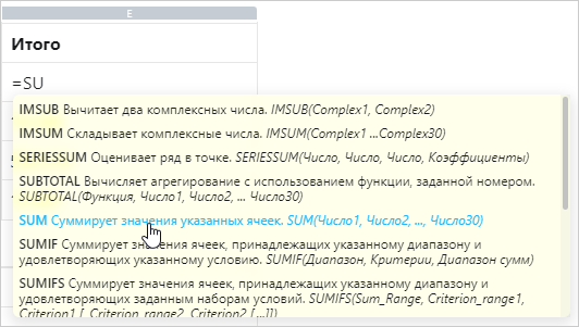 СОВЕТ. Чтобы указать диапазон аргументов функций, щелкните левой кнопкой мыши по первой ячейке диапазона, затем введите символ «:» и щелкните по последней ячейке диапазона.