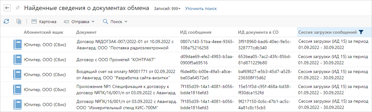 В результате отобразятся все записи о загруженных документах: