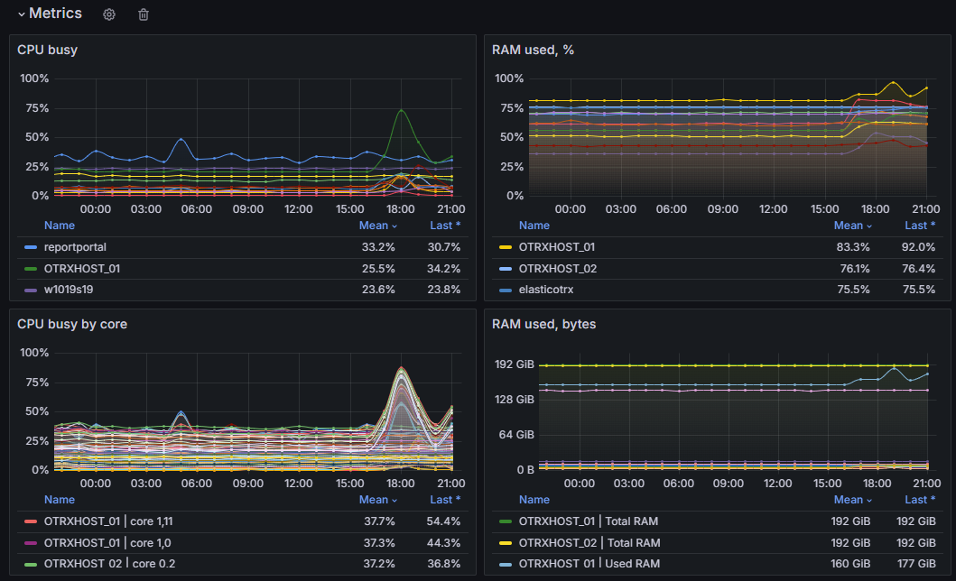 Чтобы посмотреть детальную информацию, используйте дашборд Hardware metrics. Он отображает основные метрики производительности: