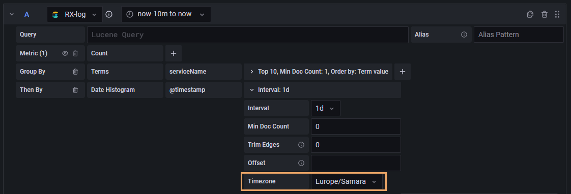 ПРИМЕЧАНИЕ. Для правильного отображения данных на панели Top 15 Log's count рекомендуется указать в поле Timezone часовой пояс сотрудника, которому будут приходить уведомления: