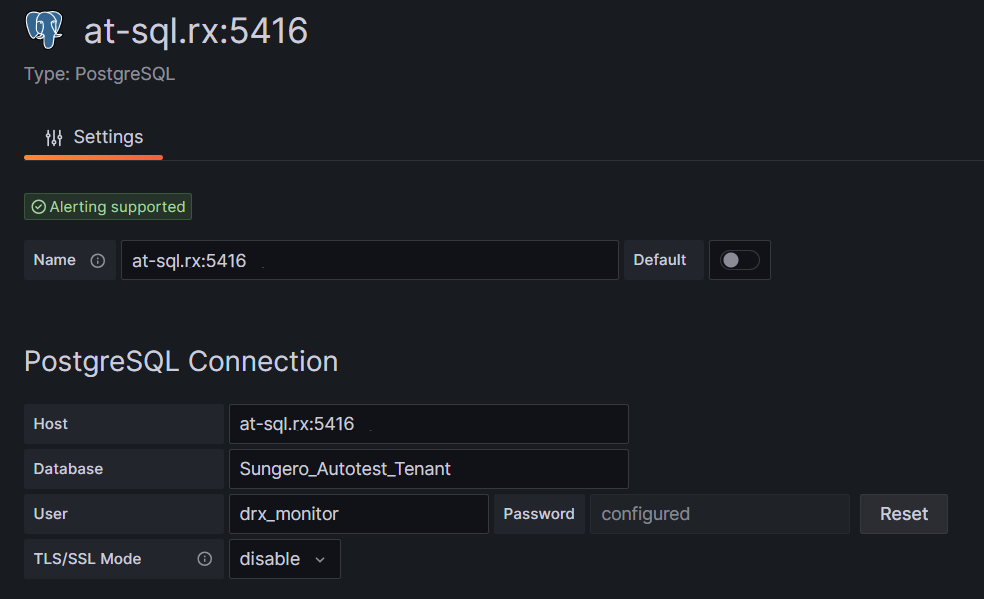 5.Для каждого сервера СУБД в Grafana добавьте свой источник данных. Значения полей Name и Host должны быть одинаковыми, чтобы данные на панелях дашборда отображались корректно.